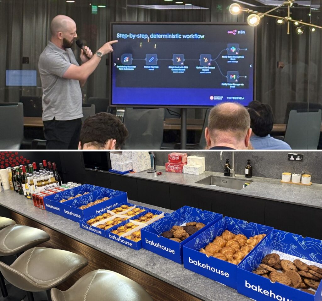 During the session, Dean shared an overview of n8n’s capabilities and delivered a live demonstration of an AI agent built using the platform. Guests had the opportunity to see first‑hand how automation can transform routine tasks and enable smarter, more efficient processes.
